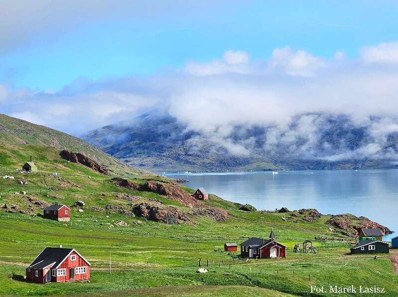 Następnie udamy się na południe wyspy, gdzie najpierw będziemy wędrować śladami wikingów. Dotrzemy do malutkiej miejscowości Qassiarsuk, gdzie znajdowała się wikińska stolica Grenlandii, czyli założona przez Eryka Rudego w X wieku, osada Brattahlid. Stąd właśnie, jego syn, Leif Eriksson, wyruszył aby odkryć Amerykę na pięćset lat przed Krzysztofem Kolumbem. Zobaczymy zjawiskowe rekonstrukcje domów wikingów oraz powędrujemy ich śladami przez zielony, grenlandzki krajobraz, który skojarzy nam się z pięknem Islandii. Zobaczymy wodospady, górskie wąwozy i rozległe doliny, gdzie spotkamy się ze stadami wolno żyjących grenlandzkich koni. Będziemy także pływać łodziami przez fiordy z turkusową wodą i podziwiać góry lodowe przyjmujące najróżniejsze kształty.
