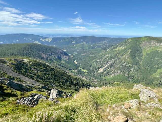 Karkonosze to pasmo górskie położone w Sudetach, na południowo-zachodnich krańcach Polski. Prawie ¾ Karkonoszy leży na terenie Czech. Choć i ta polska, mniejsza część jest wystarczająco malownicza by warto było w Karkonosze się wybrać, to jednak prawdziwe ich piękno można podziwiać po czeskiej stronie i tam też na naszej wycieczce powędrujemy. Najwyższym szczytem Karkonoszy i całych Sudetów jest Śnieżka, licząca 1603 m n.p.m.